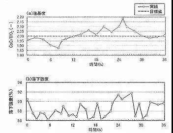 可以看到,即便在日本成熟的钢厂中,设定碱度值为 2.00 的情况下,实际生产的碱度值 也有着大幅度波动;而所得烧结矿质量(落下强度)也有着很大波动,且质量偏低,普遍低 于 90。
